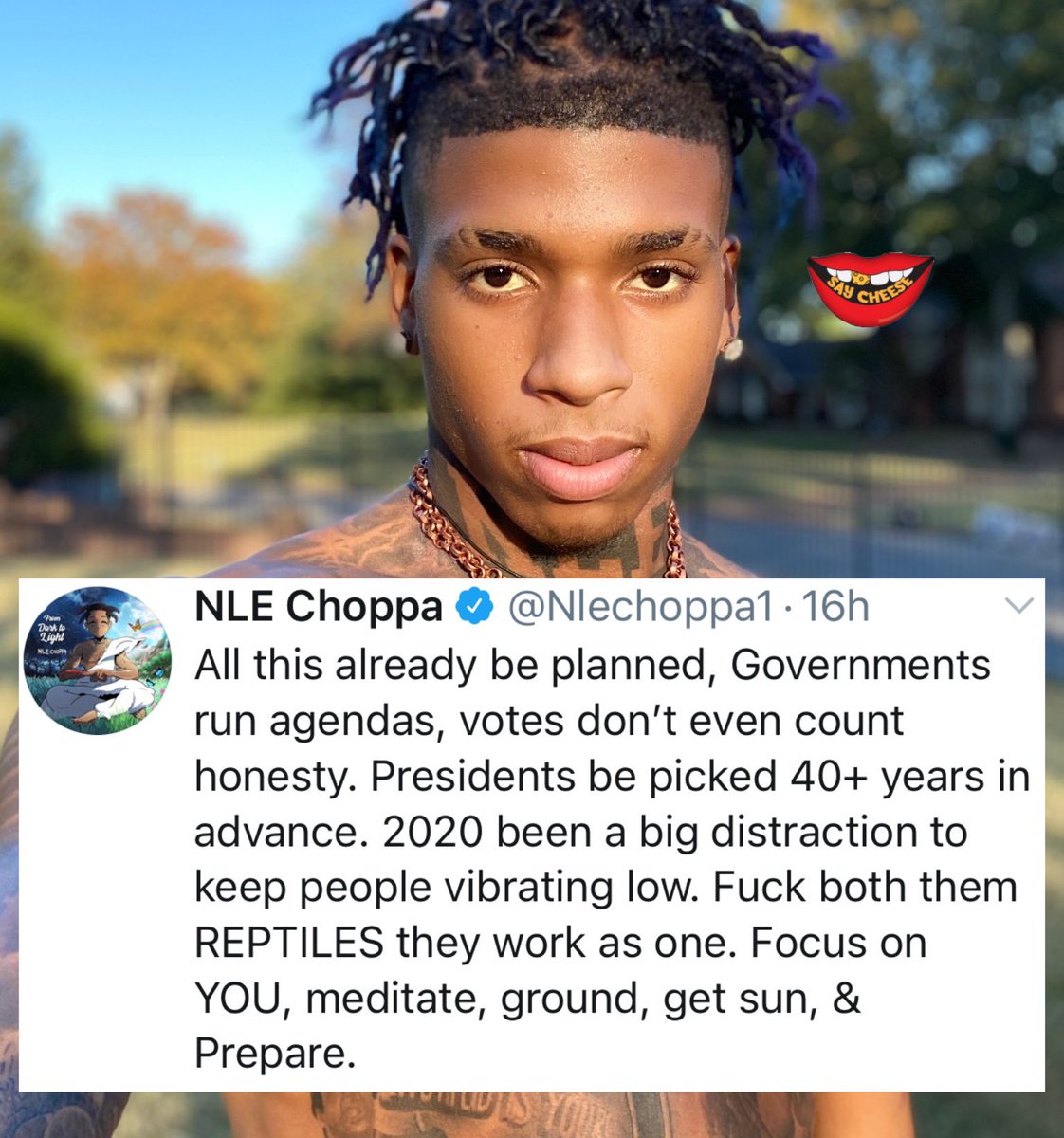 Nle choppa vote. Nle choppa claims that the public s votes don t even count and that presidents are decided 40 years in advance. In the visual the 18 year old memphis native takes a glowing orb through. Wait you were.